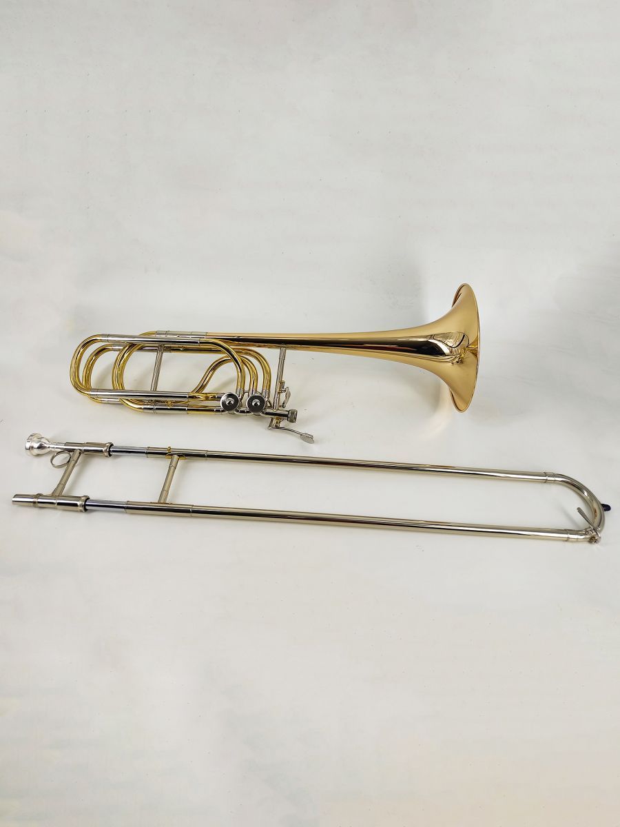 Artist SL-831 Тромбон бас Bb/F/Gb/D, раструб 241 мм, мензура 14.2 мм, настроечный крон мельхиор, кулиса мельхиор, покрытие золотой лак, облегченный кейс в комплекте