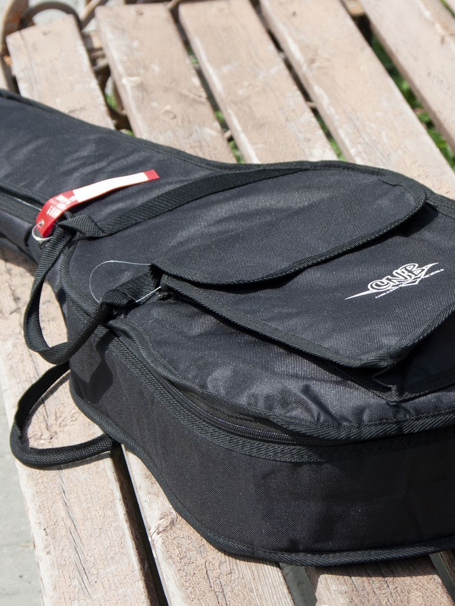 CNB CB400 – это стильный и качественный чехол для классической гитары. Главное назначение модели CNB CB400 – оберегать инструмент от внешних воздействий окружающей среды, которые негативно сказываются как на внешнем виде гитары, так и на ее звучании. Чехол изготовлен из водонепроницаемого нейлона с плотностью 600 D. Защитное уплотнение толщиной 7 мм предотвращает появление царапин и потертостей на инструменте. Чехол закрывается на прочную молнию с крепкими зипперами. Модель имеет большой наружный карман для хранения нот и гитарных аксессуаров. Заплечный ремень позволяет с удобством переносить гитару за спиной. Для транспортировки инструмента в горизонтальном положении имеются две прочные боковые ручки. Модель CNB CB400 выполнена в черном цвете, однако классический дизайн прекрасно дополняет логотип компании, расположенный на кармане. Чехол CNB CB400 создан не только для надежной защиты инструмента, но и для вашего комфорта.