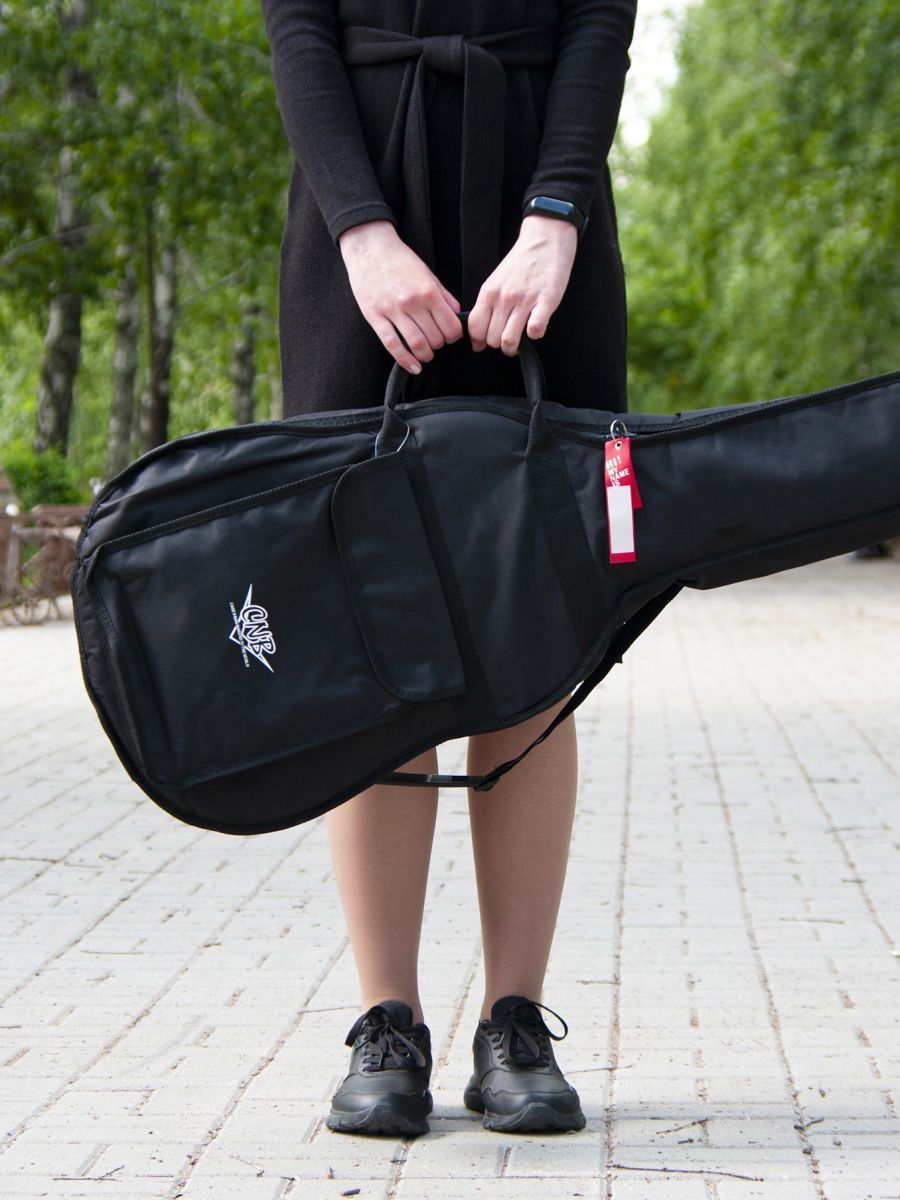 CNB DB400 представляет собой прочный и качественный чехол для акустической гитары. Чехол изготовлен из водонепроницаемого нейлона с плотностью 600 D. Защитное уплотнение толщиной 7 мм предотвращает появление царапин и потертостей на инструменте. Чехол закрывается на прочную молнию с крепкими зипперами. Модель имеет большой наружный карман для хранения нот и гитарных аксессуаров. Заплечный ремень позволяет с удобством переносить гитару за спиной. Для транспортировки инструмента в горизонтальном положении имеются две прочные боковые ручки. Модель CNB DB400 выполнена в черном цвете, однако классический дизайн прекрасно дополняет логотип компании, расположенный на кармане. Чехол CNB DB400 – надежная защита вашего инструмента от пыли, механических повреждений и температурных перепадов.