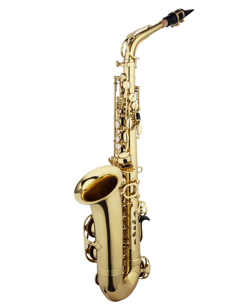 Jupiter JAS510A Саксофон альт Eb, клапан верхнего F#, фронтальная F-механика, покрытие корпуса и клапанов золотой лак, кейс JKC-AS55UA