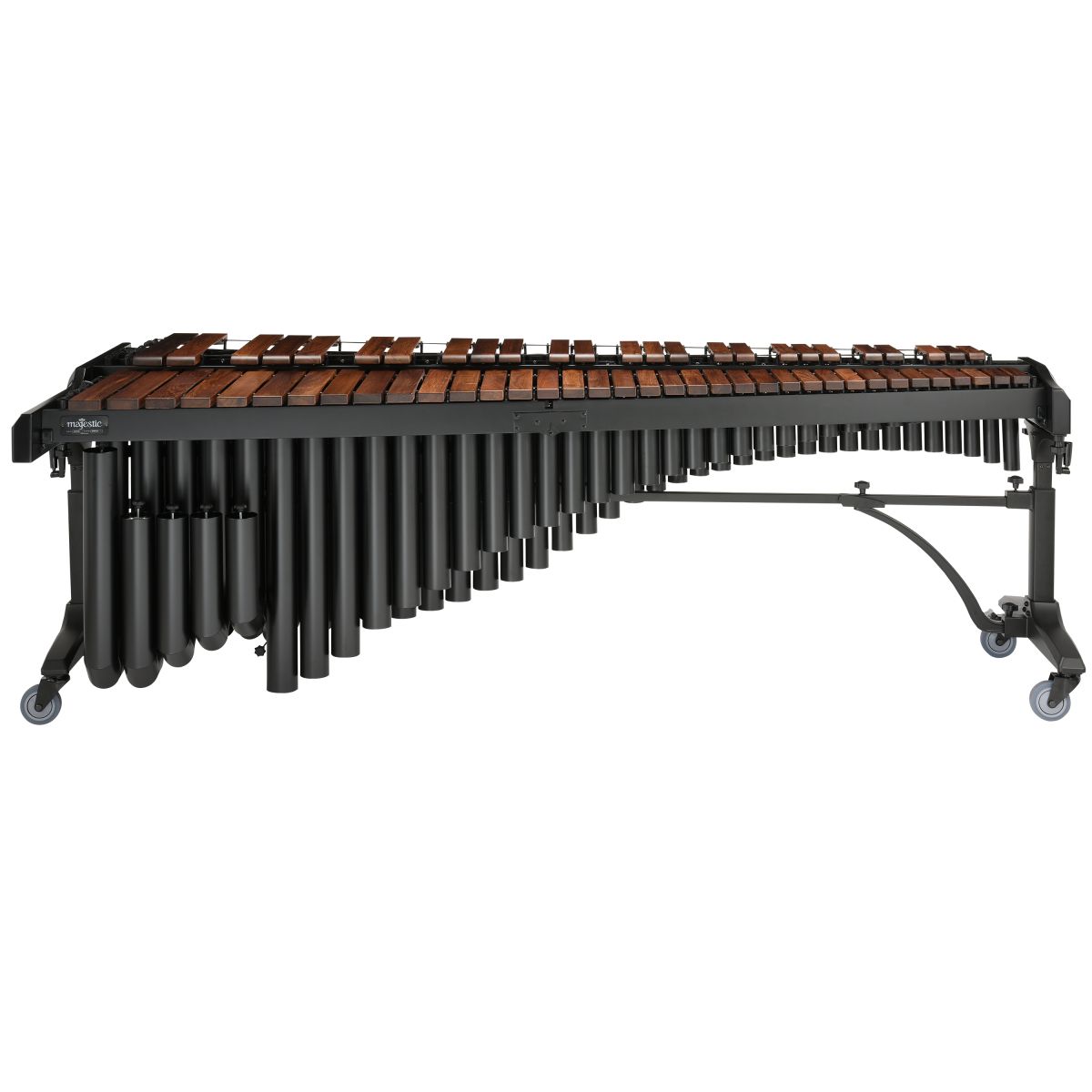 Majestic M650HB Маримба серии Concert, диапазон: 5 октавы (С2-С7), пластины 76-41мм: палисандр, настраиваемые и регулируемые ниже A2 резонаторы: черные, регулируемая высота 84-106 см, длина 269см, в комплекте накидка и молоточки