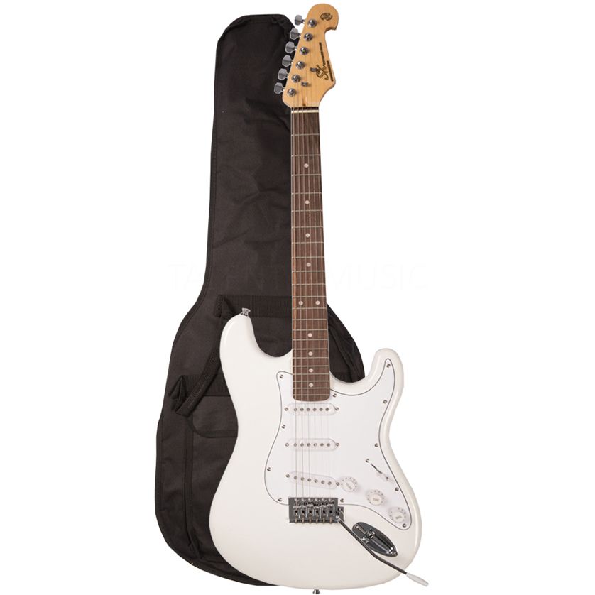 SX ED1-WT Электрогитара, корпус: липа, гриф: клен, накладка: палисандр, лады 22, звукосниматели 3 Single Coil, контроллеры: 1 громкость, 2 тона, 5 позиционный переключатель, чехол, цвет: White